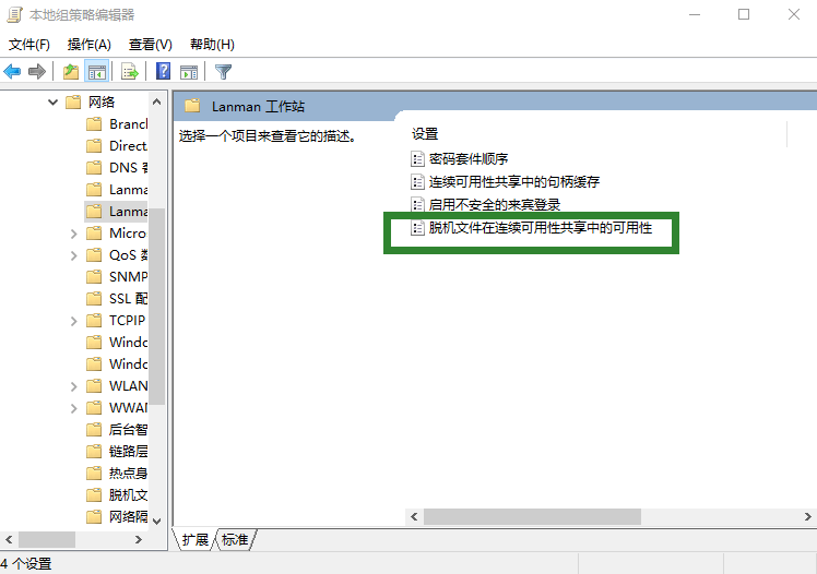 然后分别选择 计算机配置 → 管理模板 → 网络 →Lanman工作站,在右边找到 启用不安全的来宾登陆,双击打开,然后选择启用,点确定即可。