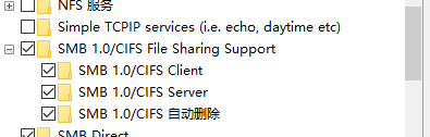 控制面板\程序\程序和功能 找到启用或关闭 Windows 功能,找到这个smb的选项勾选。